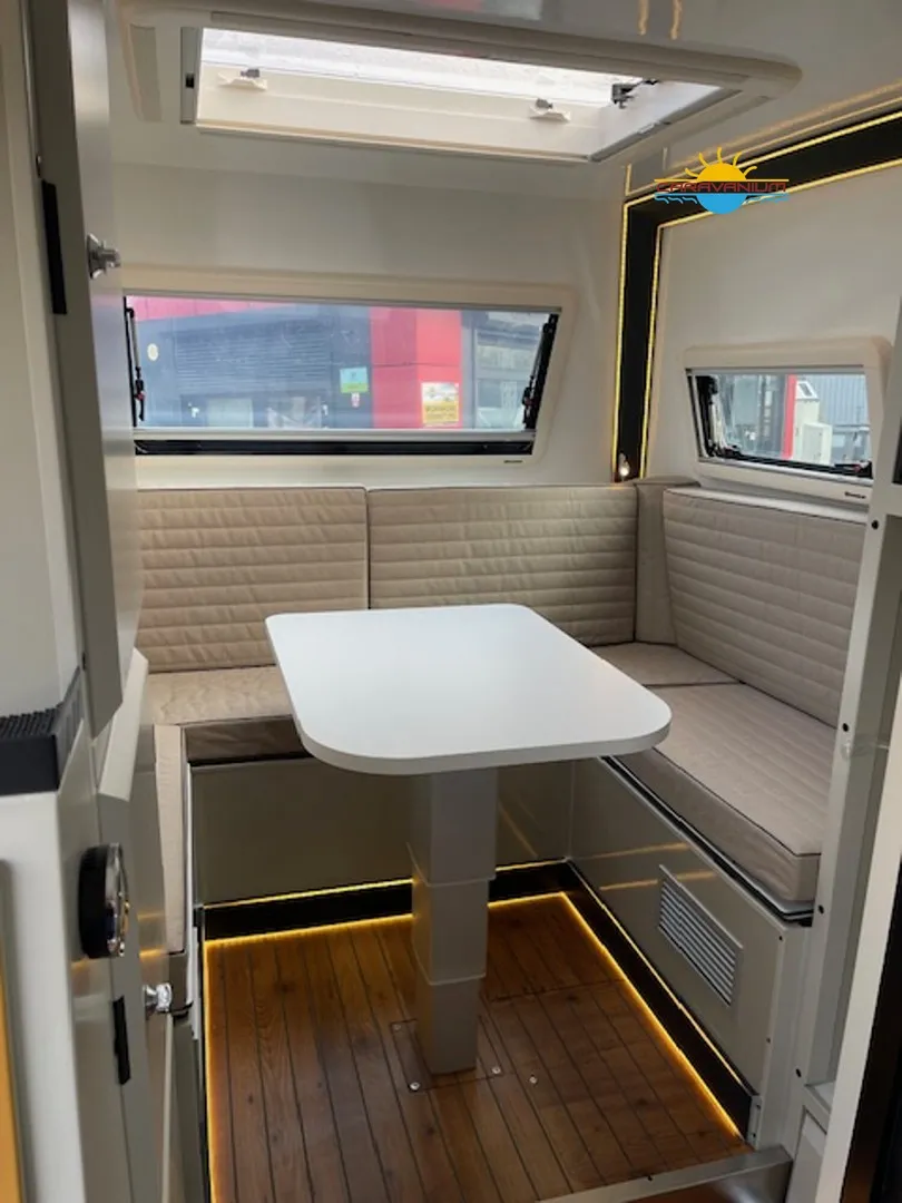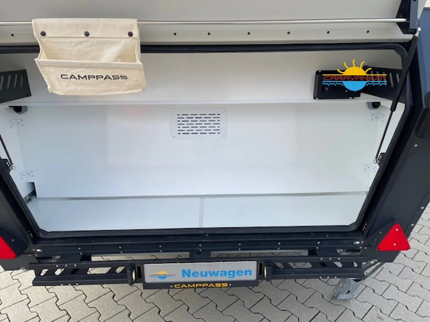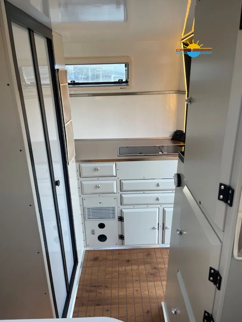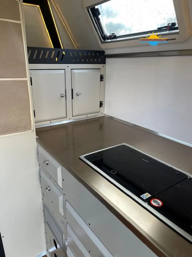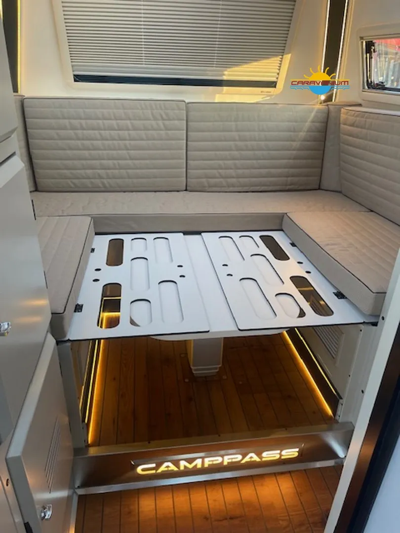 Camppass CR 550 – Geländegängiger Wohnwagen mit Komfort und Autarkie Der Camppass CR 550 ist ein kompakter Offroad-Wohnwagen, der für Reisen abseits klassischer Campingplätze entwickelt wurde. Seine stabile Bauweise und das durchdachte Raumkonzept machen ihn zum idealen Begleiter für Abenteuer mit Anspruch an Komfort und Unabhängigkeit. Serienausstattung: Robuste Offroad-Bauweise mit Bodenfreiheit für unwegsames Gelände Isolierter Aufbau mit modernem Innenausbau Standard-Außenküche (seitlich integriert) Basisbeleuchtung und 12V-Netz Fenster mit Verdunklung und Moskitonetzen Stauraumlösungen innen und außen Reserveradträger Sonderausstattung: Camppass Kombi Diesel Kompakte Dieselheizung mit integrierter Warmwasserbereitung. Effizient, wartungsarm und ideal für kältere Temperaturen oder autarkes Reisen ohne Gasversorgung. Energiepaket 1 – erweiterbare Version 100 Ah Lithium-/JEL-Akku (zweiter Akku optional installierbar) 30 A/h MPPT-Laderegler für Solarstrom 20 A/h Ladegerät für Landstromanschluss 200 W Solarpanel (dachmontiert, extern auf 400 W erweiterbar) 1000 W reiner Sinus-Wechselrichter (bereits auf 2000 W aufgerüstet) Wechselrichter 2000 W Ermöglicht die Nutzung von Haushaltsgeräten wie Kaffeemaschine, Föhn, Induktionskochfeld oder Laptop ohne Landstromanschluss. Fahrradträger Thule Excellent Black Edition Hochwertiger, stabiler Träger für zwei Fahrräder, montiert am Heck. Ideal für sportliche Reisen. Thetford Kühlschrank 90 L Kompressor-Kühlschrank mit großem Nutzvolumen und zuverlässiger Kühlleistung – auch bei hohen Außentemperaturen. Tablet (Steuerungseinheit) Zentrales Bedienelement zur Steuerung und Überwachung verschiedener Bordfunktionen wie Stromversorgung, Wasserstand, Heizung oder Licht. Porta-Potti 565P (tragbare Toilette) Mobile Kassettentoilette mit integriertem Spülsystem, ideal für flexible Nutzung ohne festes Badezimmer. Zweite Küche (Indoor-Kitchen) Zusätzliche Innenküche für die Nutzung bei schlechtem Wetter. Ergänzt die Standard-Außenküche um mehr Flexibilität beim Kochen.